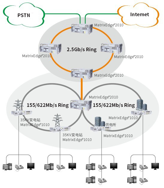 MatrixEdge2010可支持STM-1、STM-4、STM-16、E1、FE、GE等多种业务的接入和汇聚。